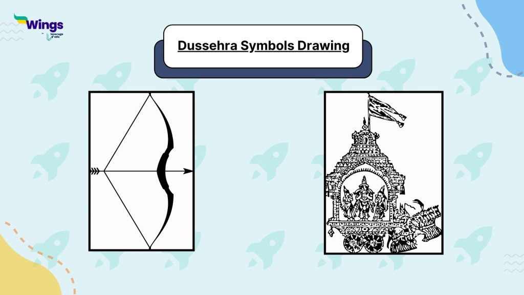 You can draw bow and arrow, Ram and Sita, Hanuman, or the palace of Ayodhya to symbolise Ramayana and Dussehra.
