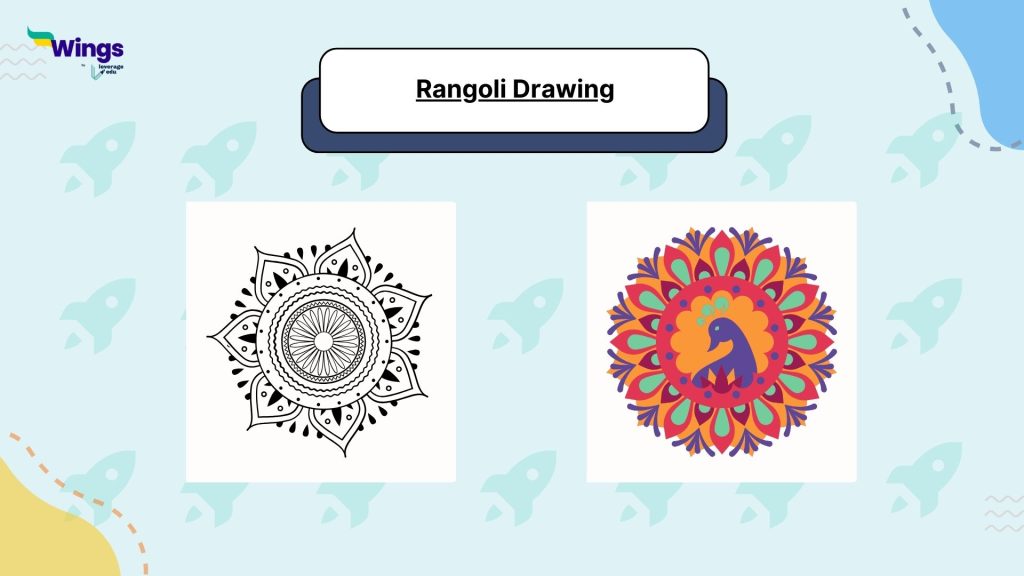 Hindu festivals are usually incomplete without Rangoli. Even though rangoli is created at the entrance of doors, we can draw outlines and colour them accordingly.