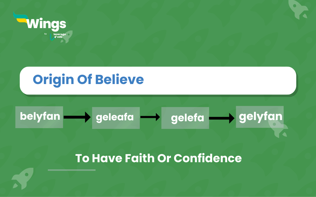 The word believe originated from the Old English words “belyfan, geleafa, gelefa, gelyfan” which means “to have faith or confidence”.So, the word believe means to accept something as genuine, true, or real.