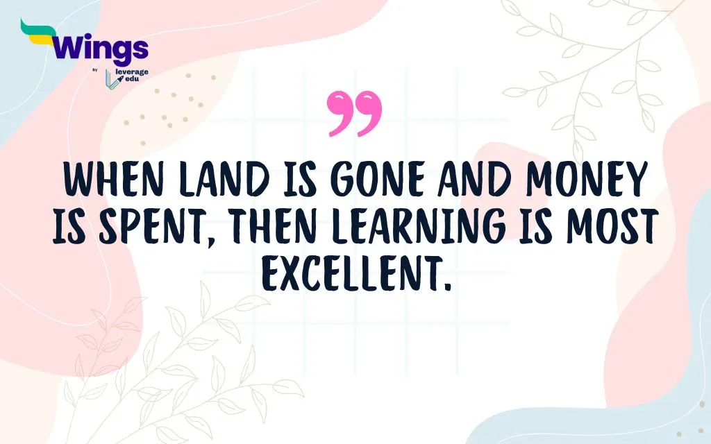 | Meaning: It indicates that when you’ve lost your land and spent all your money, knowledge and learning become the most valuable and important assets you have left. |