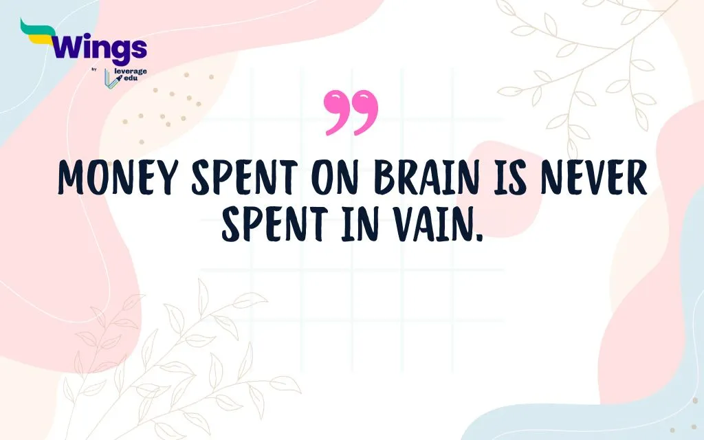 | Meaning: “Money spent on the brain is never spent in vain” indicates that investing in education, knowledge, or learning is always worthwhile and beneficial. It implies that money used to improve one’s intellect or skills will always yield valuable returns. |