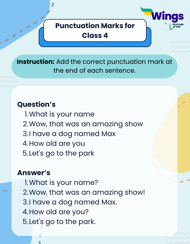 Here are some punctuation exercises for Class 4 students: