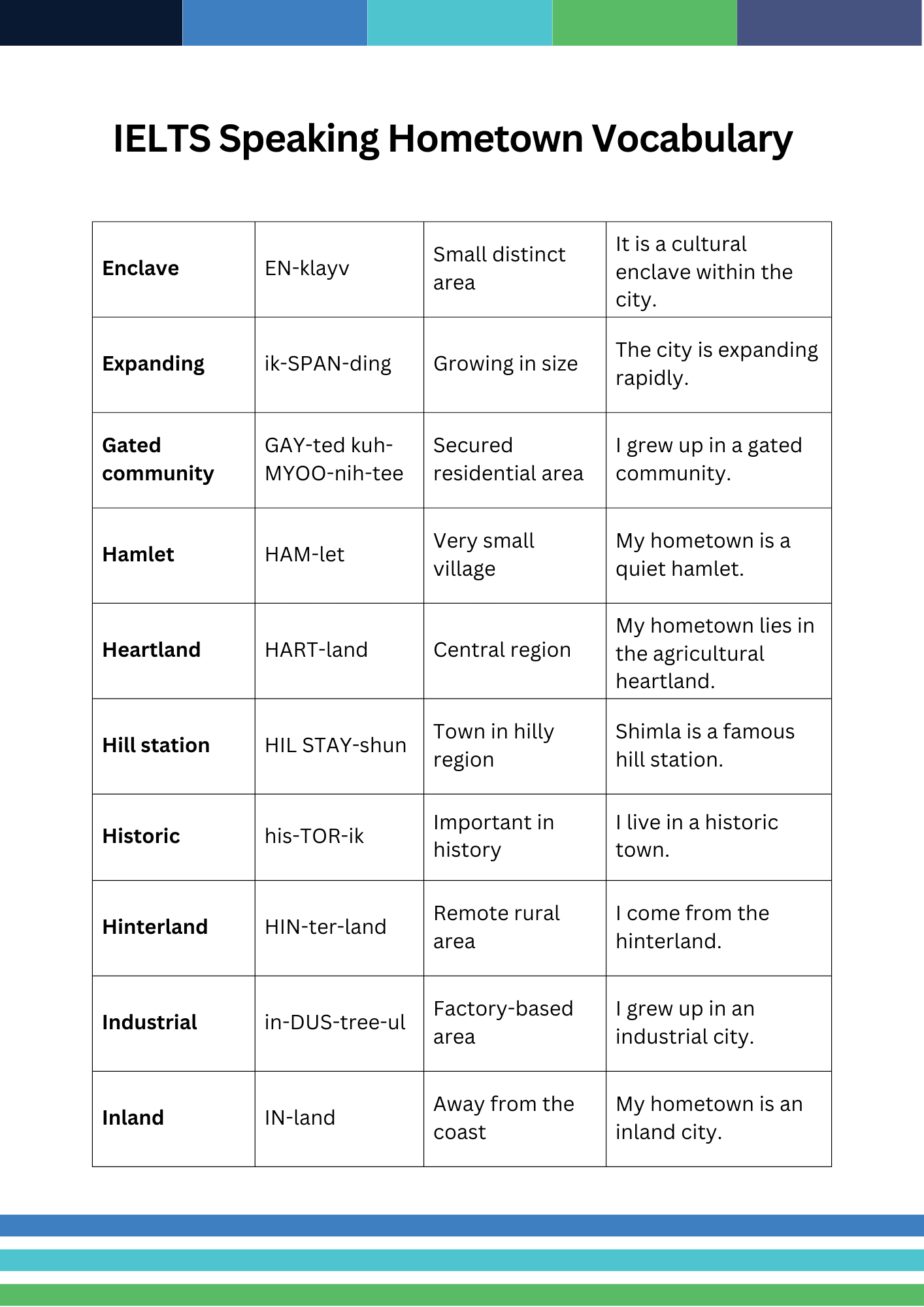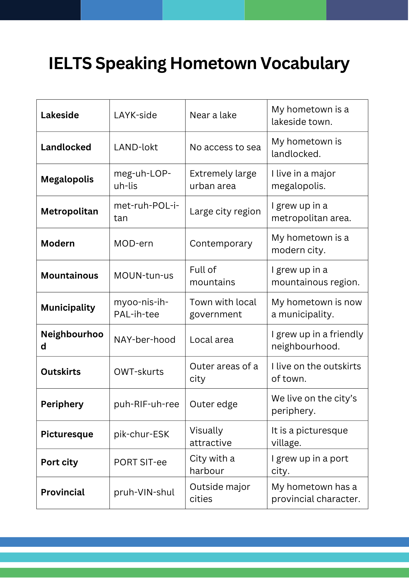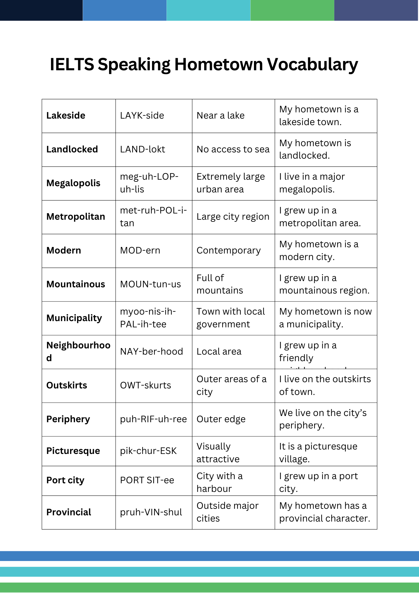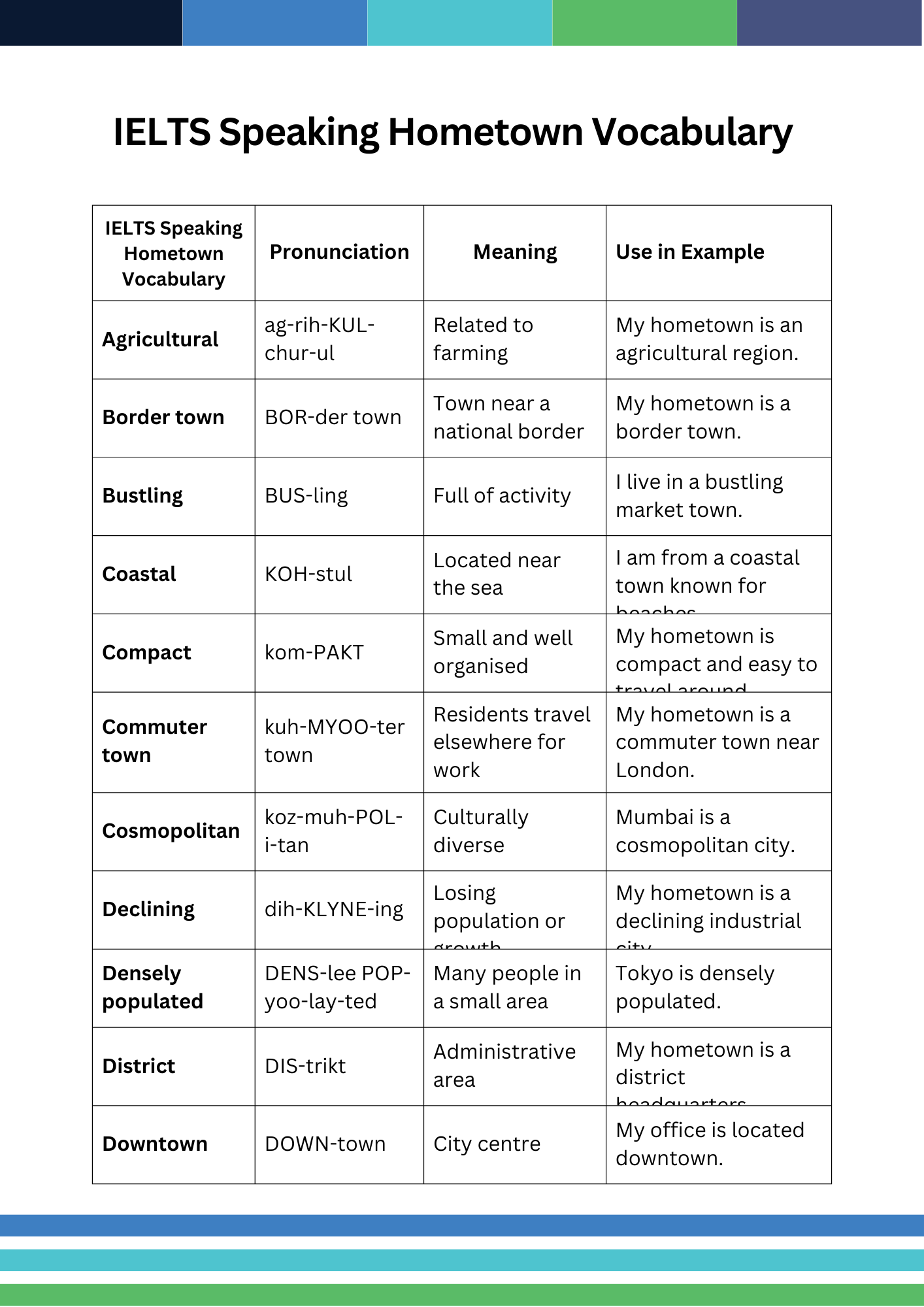 - Common IELTS Speaking Hometown Vocabulary