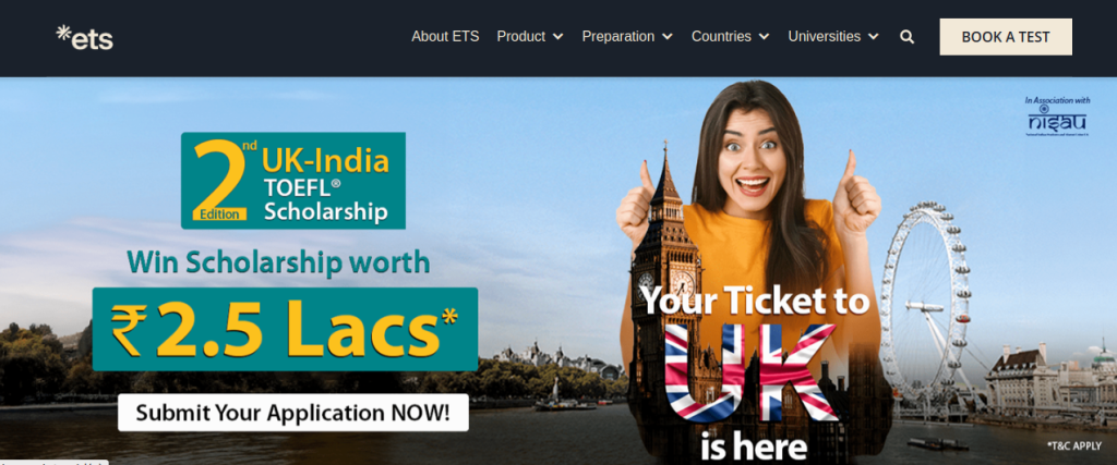 ETS TOEFL® and the National Indian Students and Alumni Union (NISAU) have announced the UK Indian TOEFL scholarship. A total of 10 scholarships are available to Indian applicants. Moreover, both undergraduate and postgraduate students wanting to study at a UK university can apply. Applications are selected by a Panel of NISAU and UK University representatives. The selected students would receive a scholarship amount of INR 2.5 Lakh. The scholarship amount is supposed to cover the college expenses. For example, tuition fees, housing deposits, book expenses, and transportation costs, among others. The last date to apply for the scholarship is 15th July 2024.