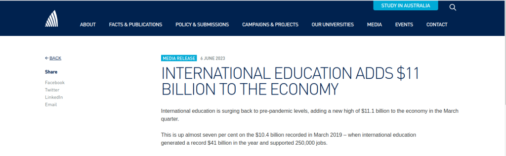 International students contributed $11.1 billion to Australia’s economic growth in March. Around $10.85 billion is contributed by offshore students. As per the Universities Australia’s representative, the education sector is the biggest supporter of the country’s economic growth.