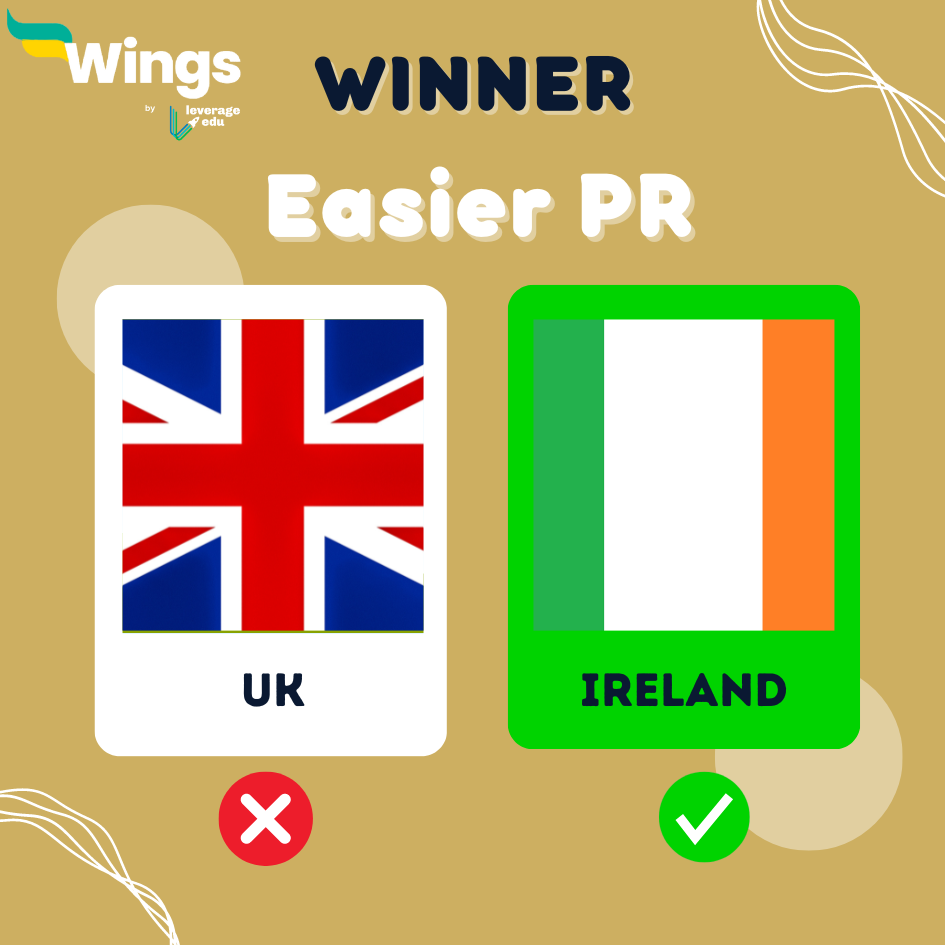 The above comparison shows the process of receiving a work permit and permanent residency is equally easier in Ireland. Hence, Ireland receives +2 points in this round of UK vs Ireland.