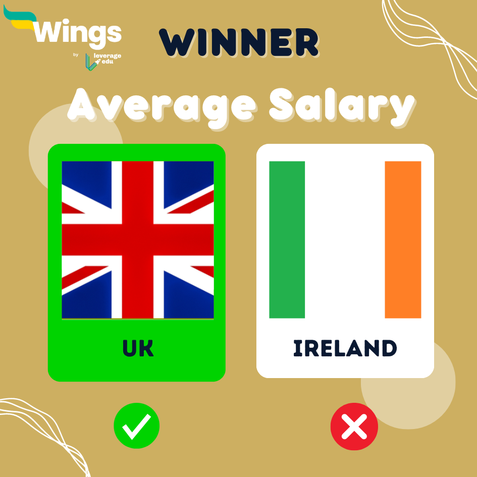 It is apparent from the above comparison that both the UK and Ireland offer a high salary. Hence, we will give +2 points to both the UK and Ireland in this round of UK vs Ireland.
