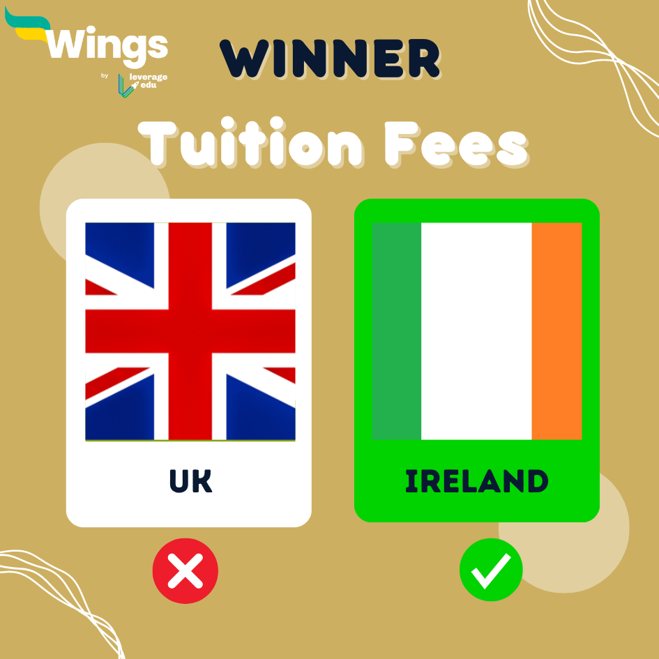 The above tables show that Ireland has lower tuition fees when compared to the UK. Hence, Ireland will be awarded +2 points in this round of UK vs Ireland.